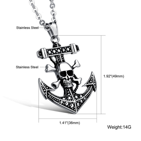 Pirate Skull & Bones Anchor Biker Pendant Necklace High Quality 316L Stainless Steel Construction  Pendant Approximately 1.92" (4.9cm) x 1.41"...